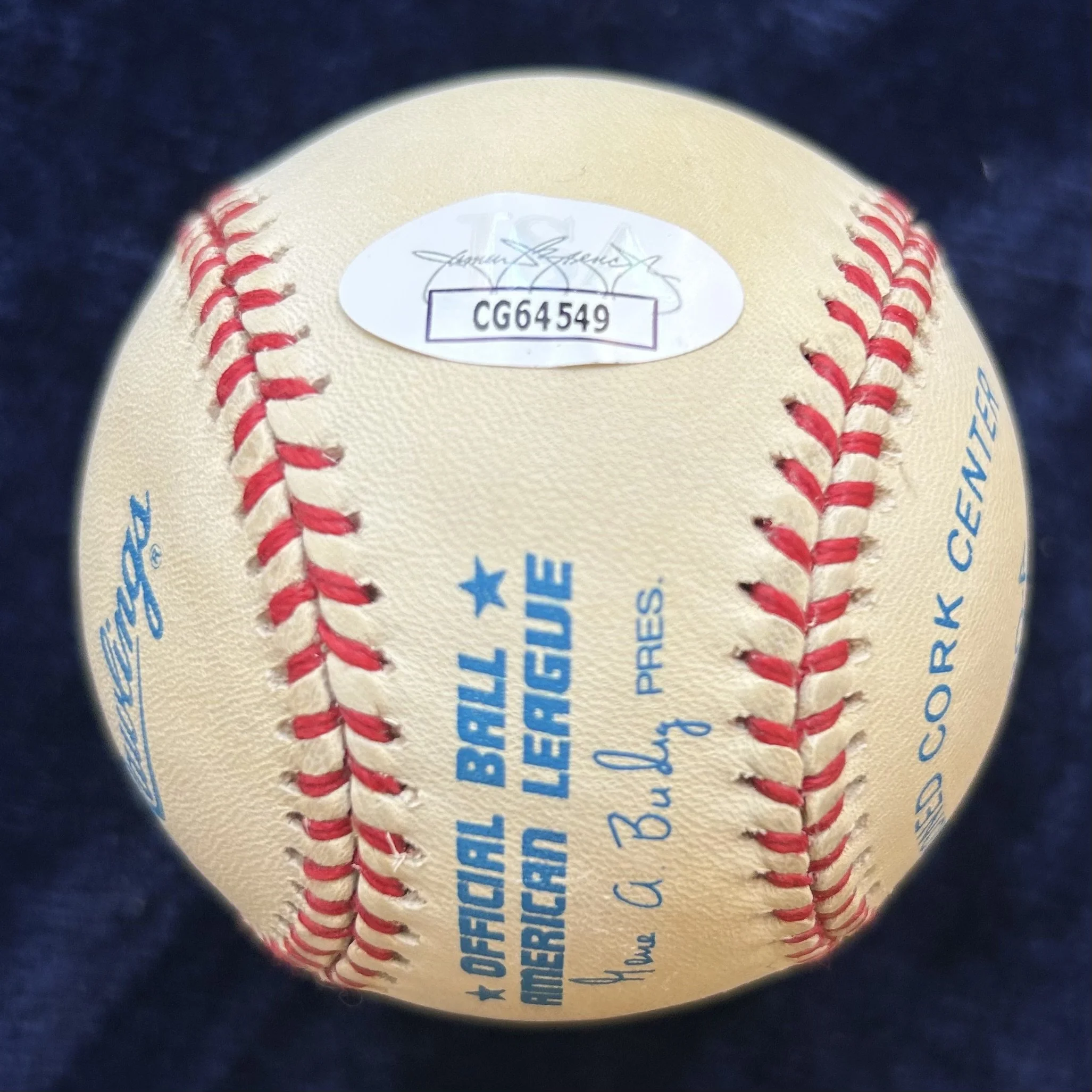 Yogi Berra "MVP 51-54-55," "HOF 1972," "#8," "10 WS Champs," "12 WS HRs." Signed Official American League Stat Baseball. JSA certified.